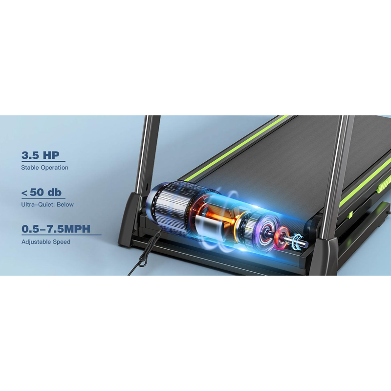 【3.5HP Powerful Motor】 XMKEY Folding treadmill is Equipped with a 3.5HP quiet motor, adjustment speed range 0.5-7.5 mph, and features a dual shock absorbing system with a noise level of less than 50 db, like a pet running around the house, which allows you to work out at home.