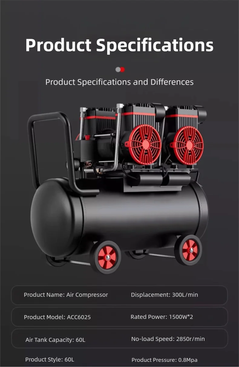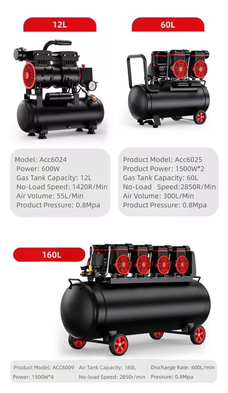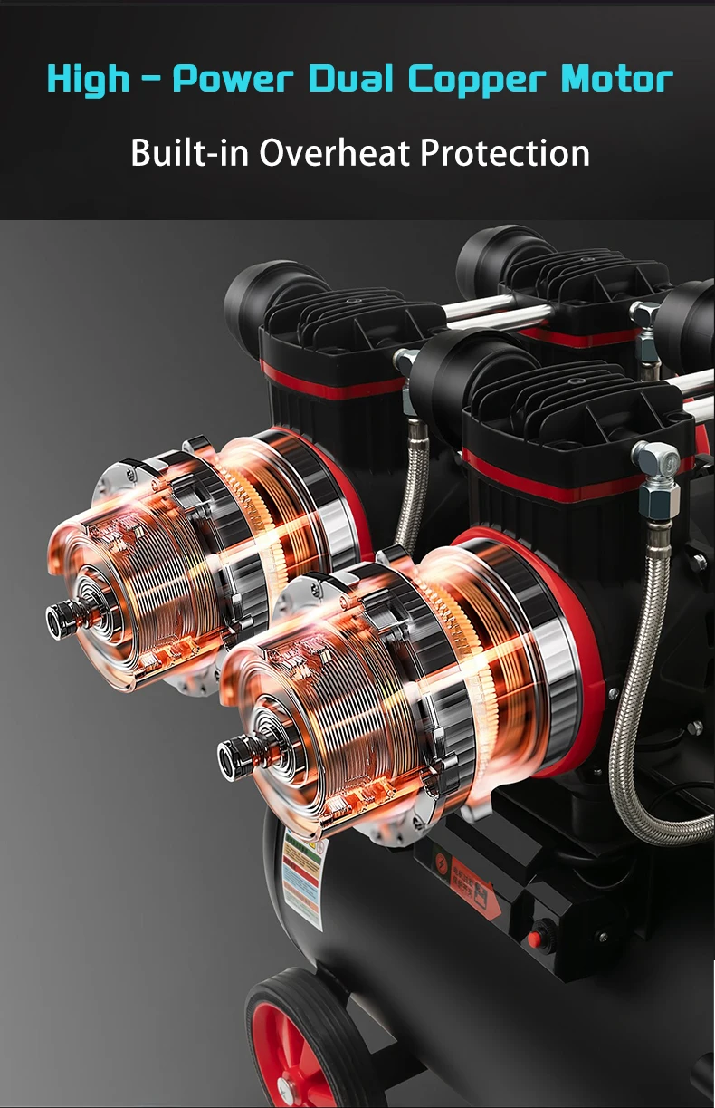 The oil-free design ensures silent operation, making it perfect for use in quiet environments.