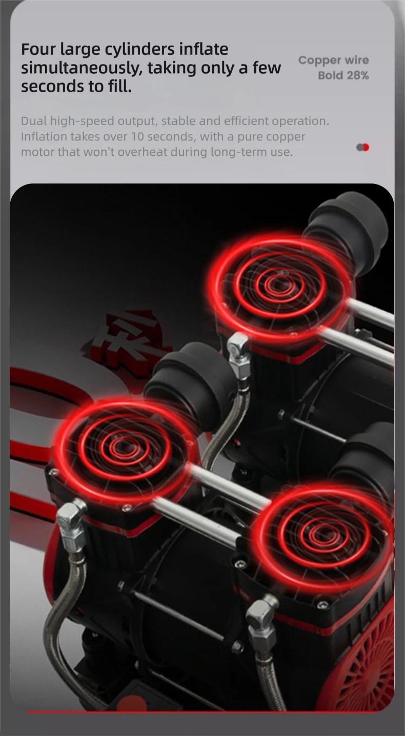 This portable air pump is ideal for home repairs, tire inflation, and even nail guns.