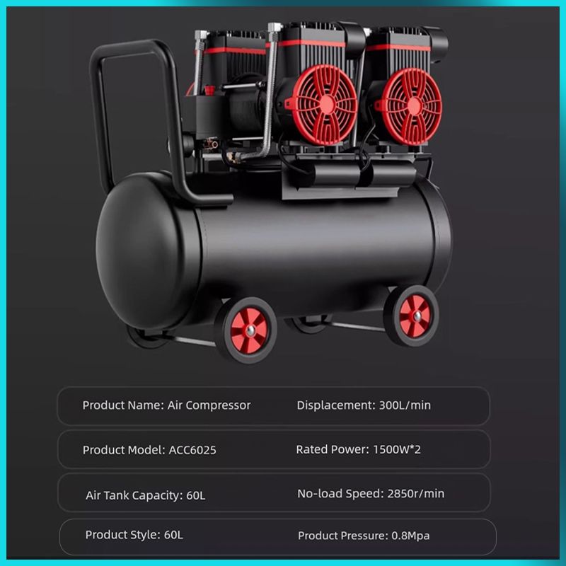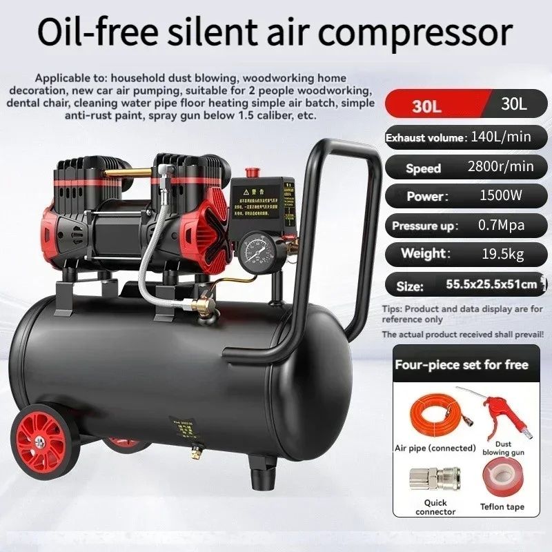 The oil-free design ensures silent operation, making it perfect for use in quiet environments.