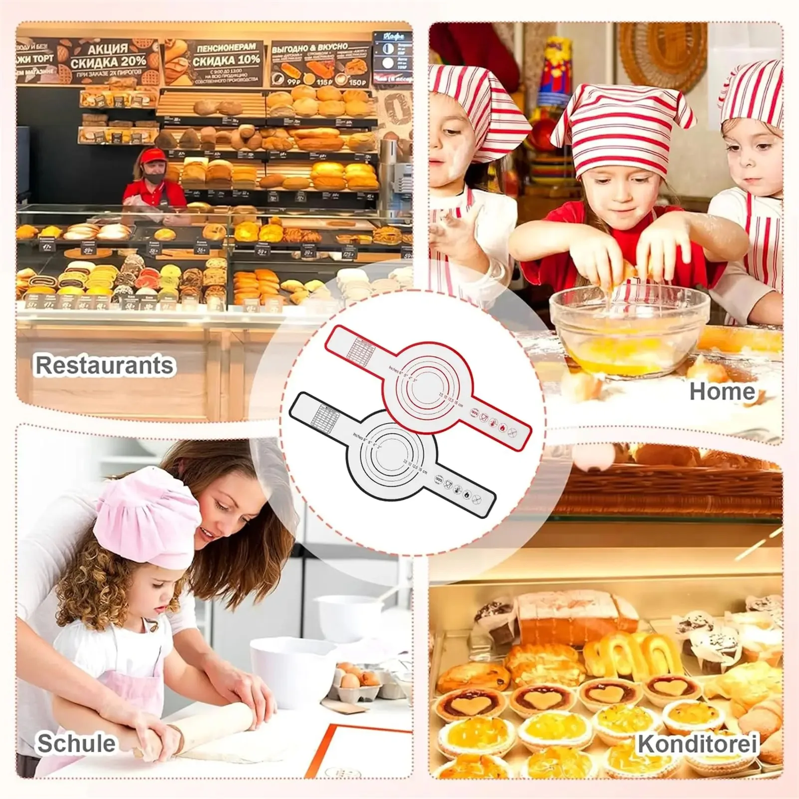 Our mats are great for working with sticky materials. It is much easy to roll out the dough, pie, pizza crust, brand, homemade biscuits and cookie dough.