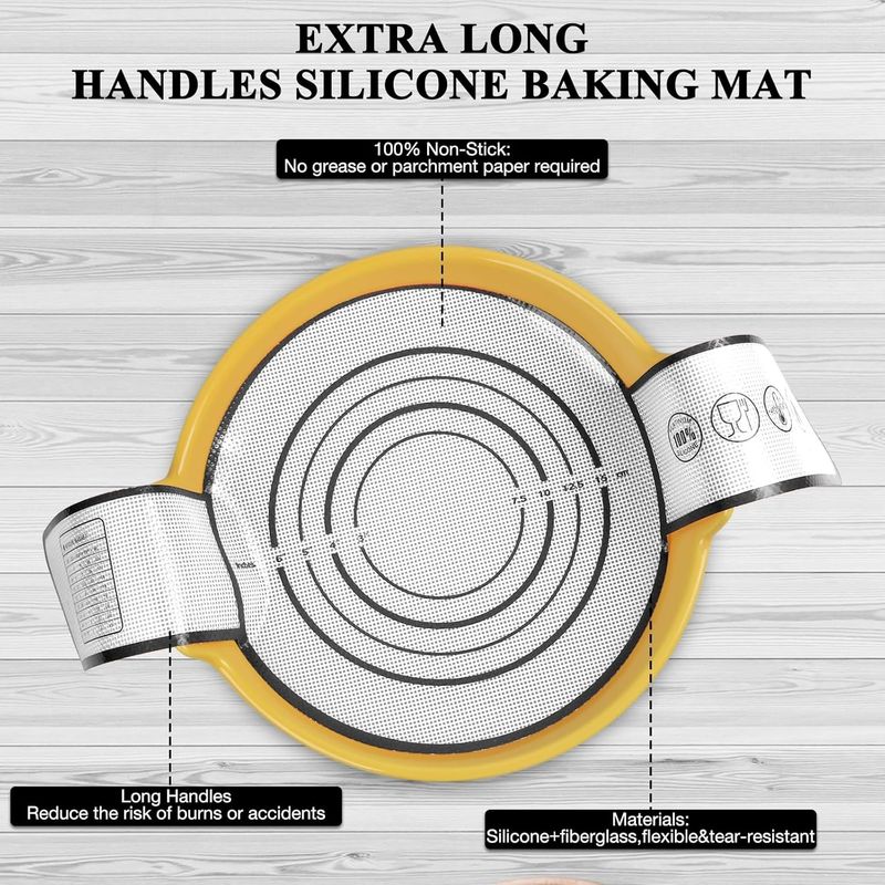 Silicone Baking Mat with Long Handles Kneading Pad Dough Mat Pizza Cake Dough Maker Kitchen Cooking Non-Stick Gadgets Bakeware