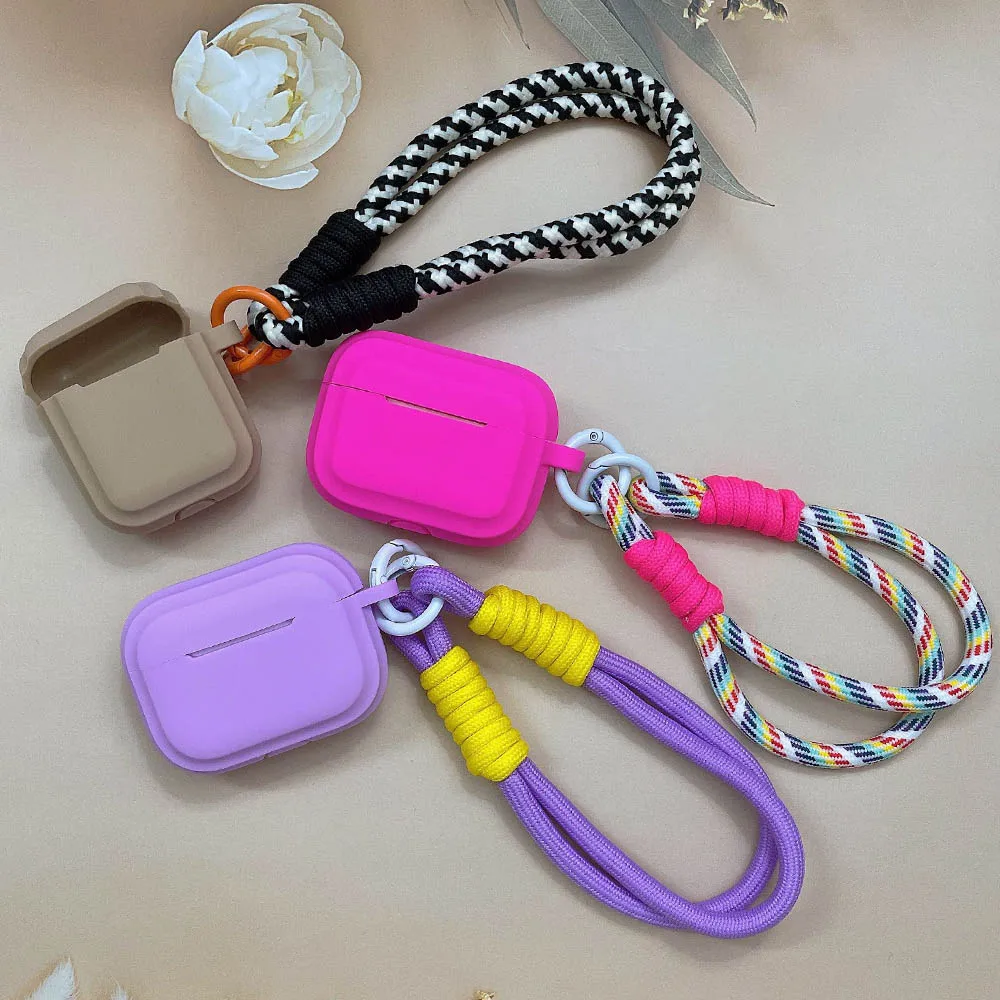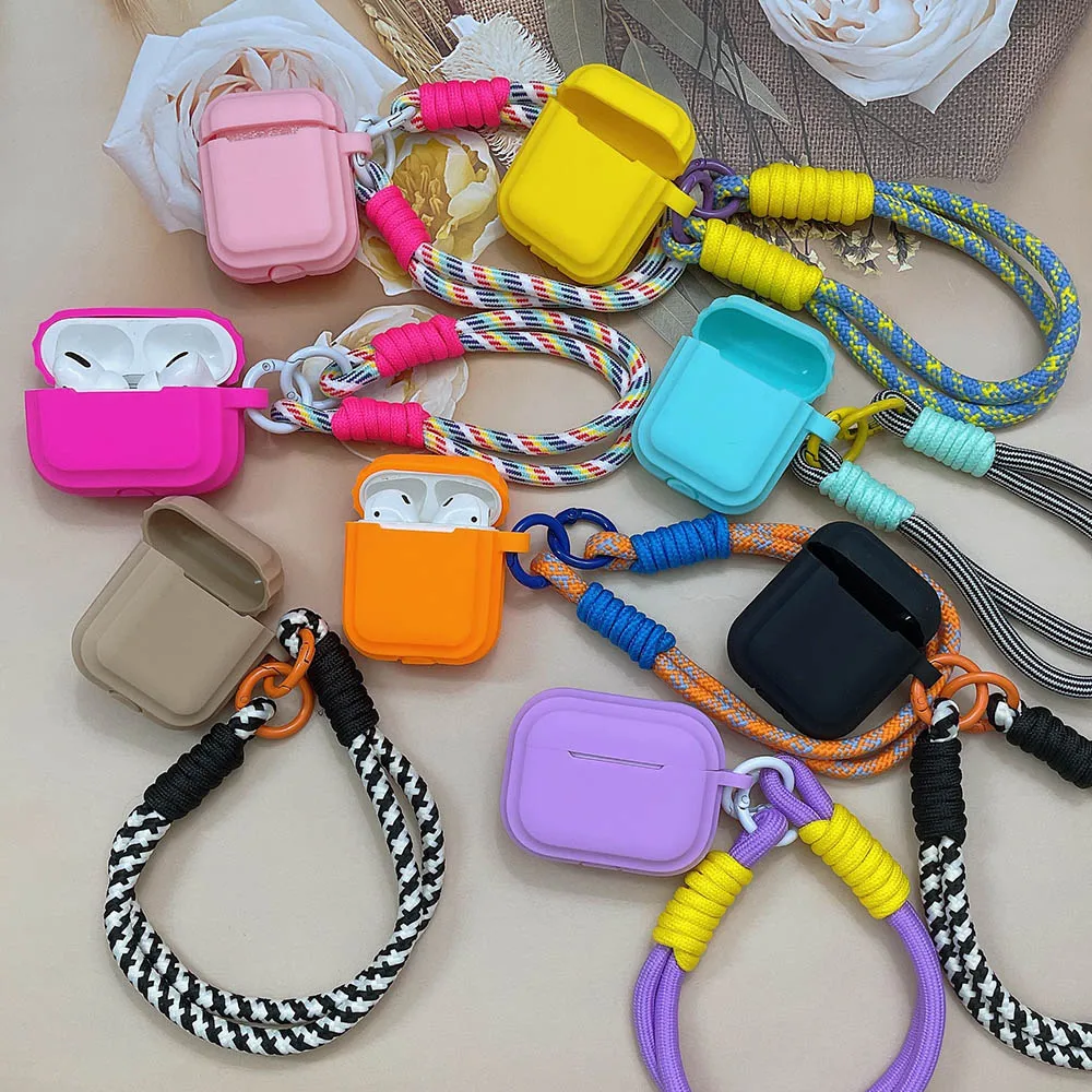 Silicone Case for Apple AirPods 1 2 Pro 3rd Generation Cases with Strap Lanyard Cute Candy Color Soft Earphone Protective Cover