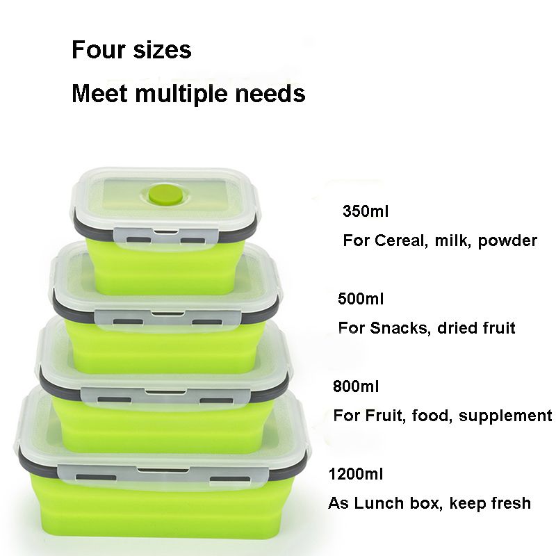Silicone Foldable Lunch Box Portable Food Storage Container Collapsible Bento Box 350/500/800/1200/1600ML