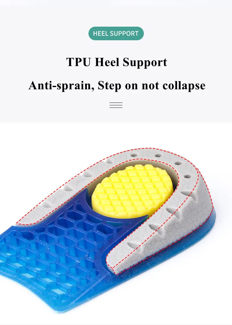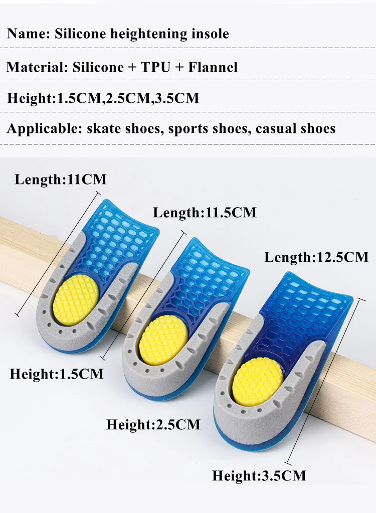Silicone Heightening Increase Insole Inner Height Templates Half Cushion Soft Elastic Arch Support Orthopedic Insoles Men Women