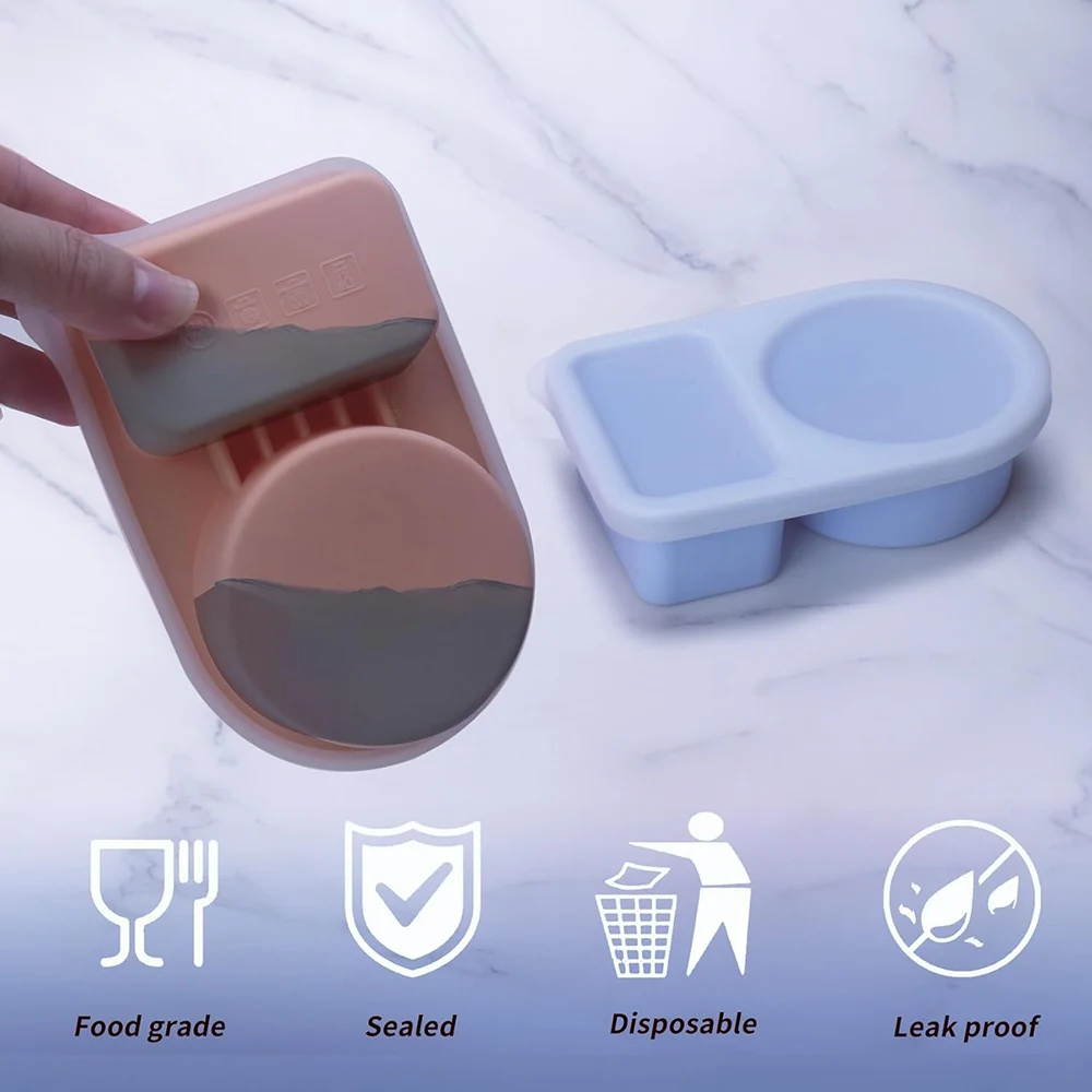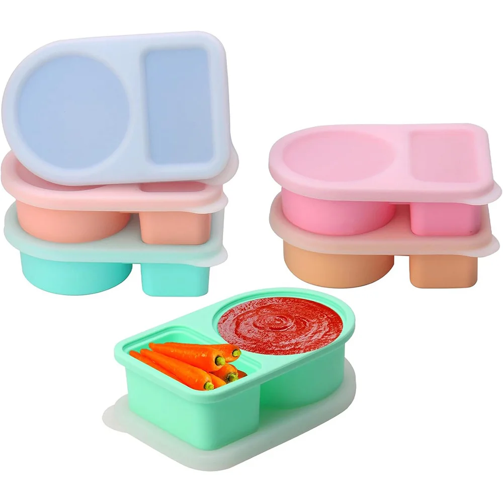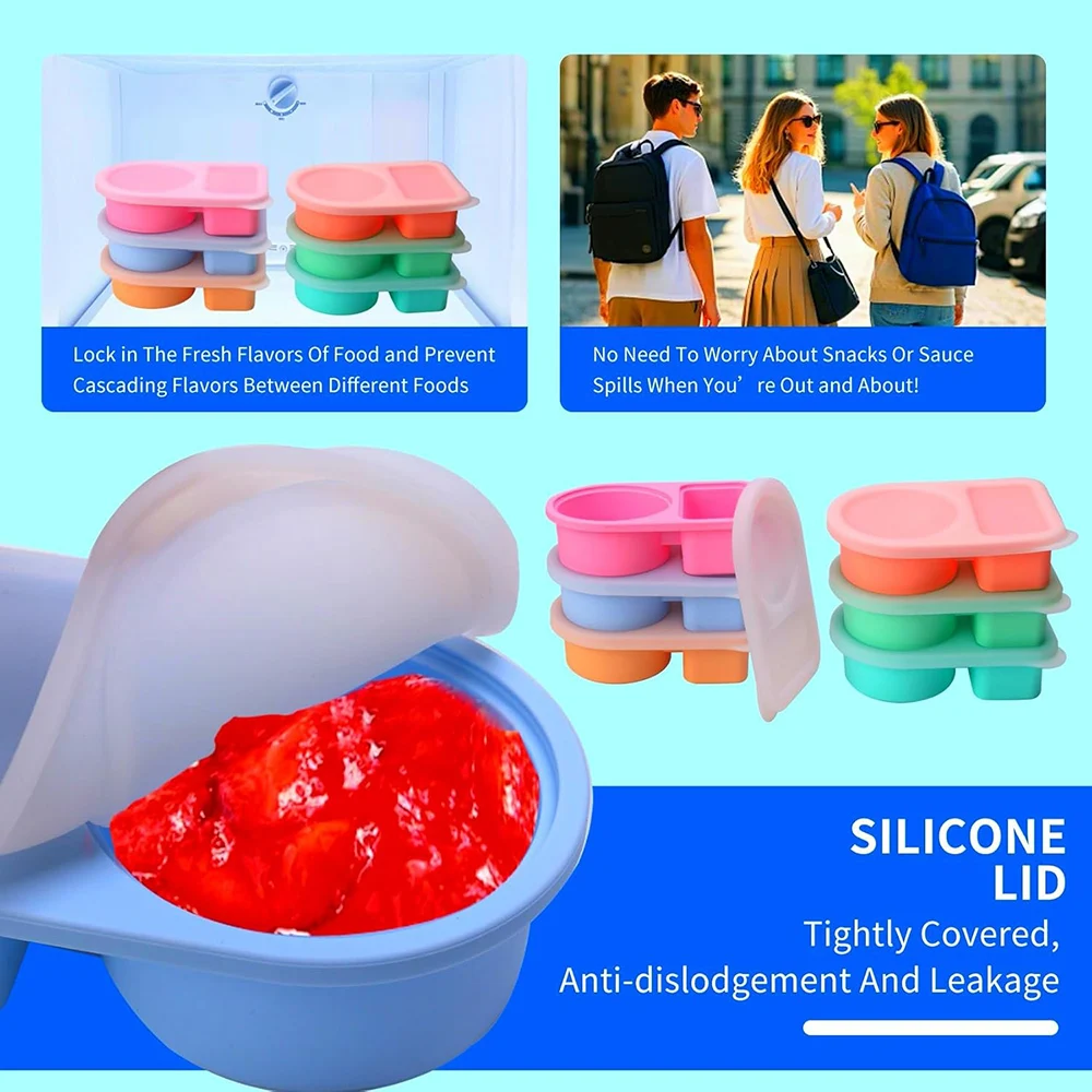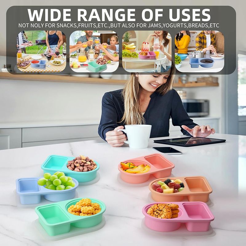 Silicone Reusable Snack Containers with Lids Double Compartment Snackle Box BPA-Free & Leakproof, Small for School,Office,Picnic