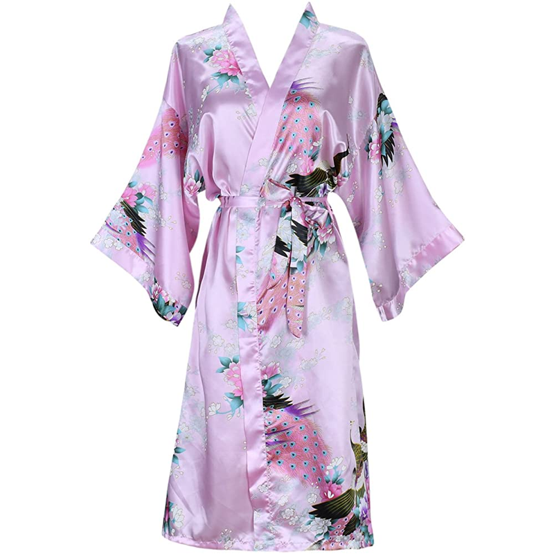 Silk Satin Wedding Bride Bridesmaid Robe Floral Bathrobe Short Kimono Robe Night Robe Bath Robe Fashion Dressing Gown For Women