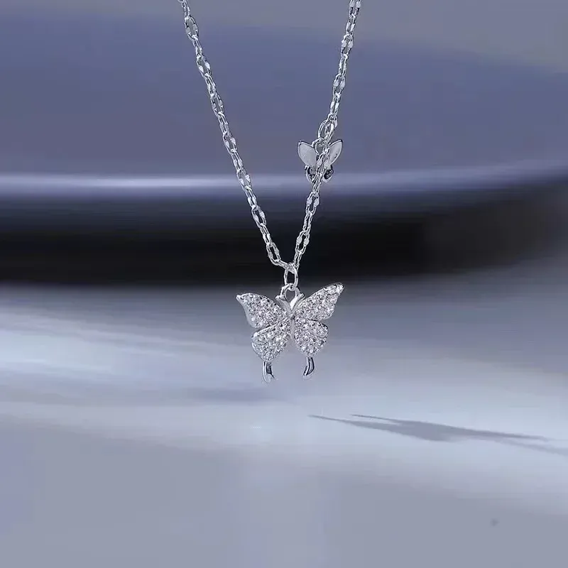 Silver Butterfly Necklace Women Crystal Zircon Pendant Necklace for Women Girl Crystal Chain Necklace Party Jewelry