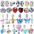 Silver Charm 925 Sterling Silver Clip Charms Dangle Charm CZ pave Round Clip Beads Fit Original Bracelet Jewelry Making