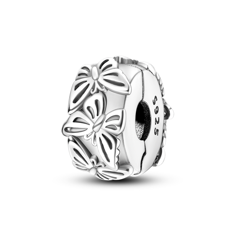 Silver Clasp 925 Sterling Silver CZ pave Clip Charms Daisy Beads Stopper Safety Chain fit Original Bangle Bracelet Jewelry Clip
