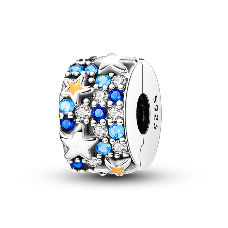 Silver Clasp 925 Sterling Silver CZ pave Clip Charms Daisy Beads Stopper Safety Chain fit Original Bangle Bracelet Jewelry Clip
