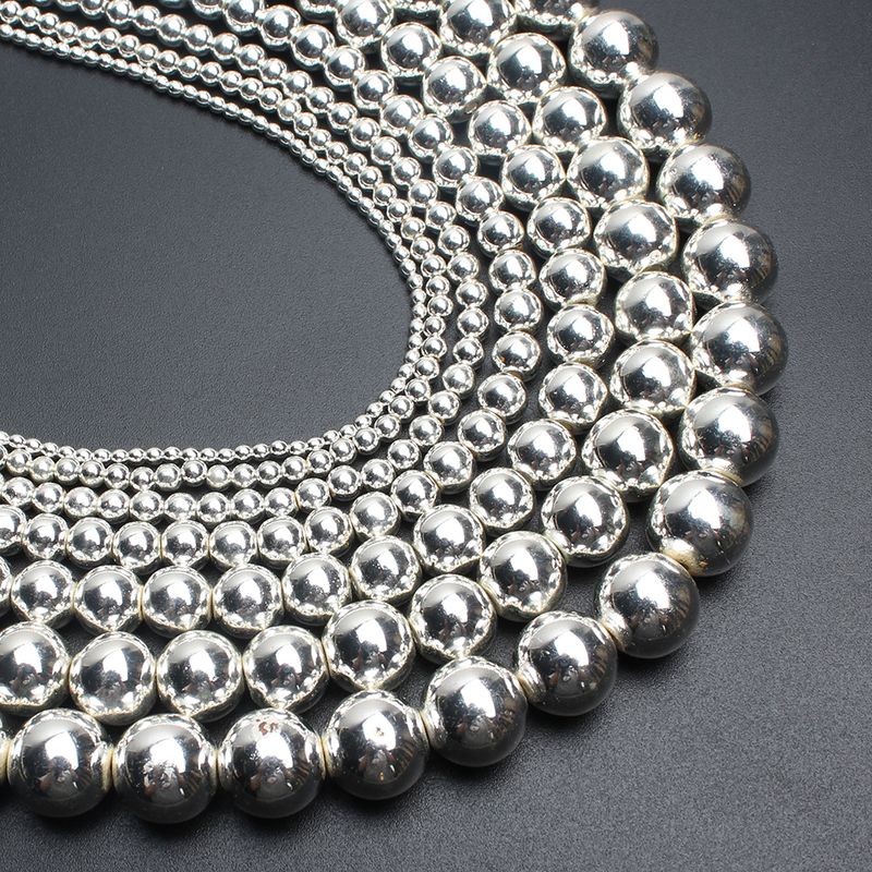 Silver Color Hematite Stone Natural Loose Round Beads For DIY Jewelry Making Bracelet Earring Accessories 15'' 2 3 4 6 8 10 12mm