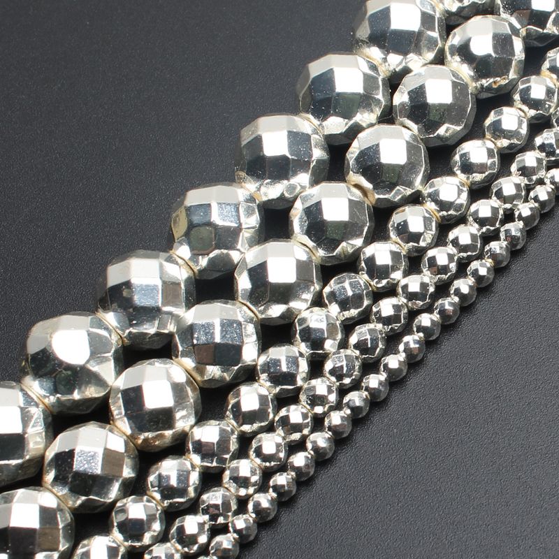 Items Name:Silver Color Hematite Stone Natural Loose Round Beads For DIY Jewelry Making Bracelet Earring Accessories 15'' 2 3 4 6 8 10 12mm