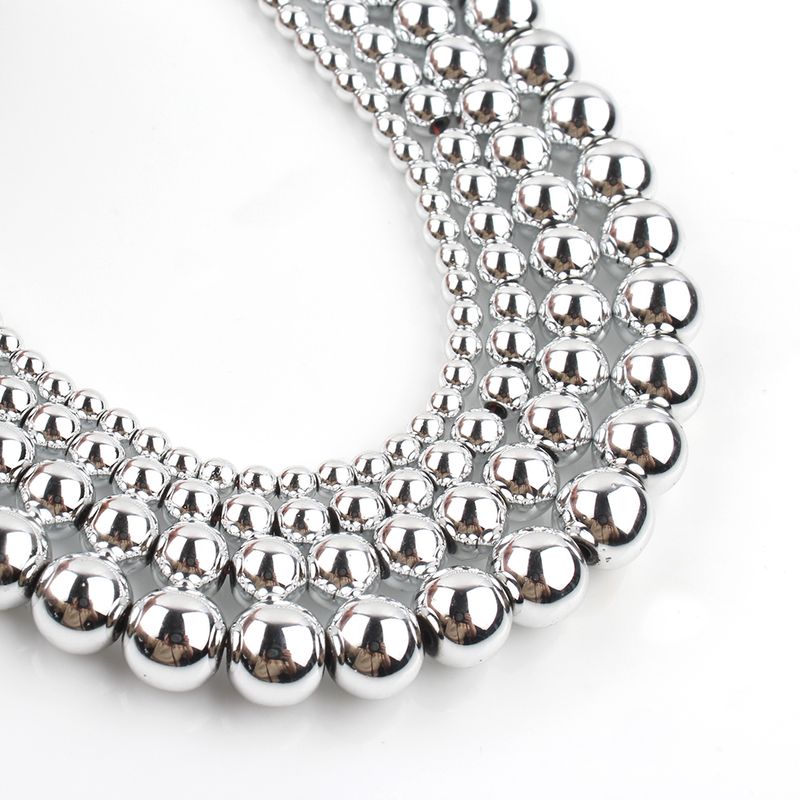 Items Name:Silver Color Hematite Stone Natural Loose Round Beads For DIY Jewelry Making Bracelet Earring Accessories 15'' 2 3 4 6 8 10 12mm