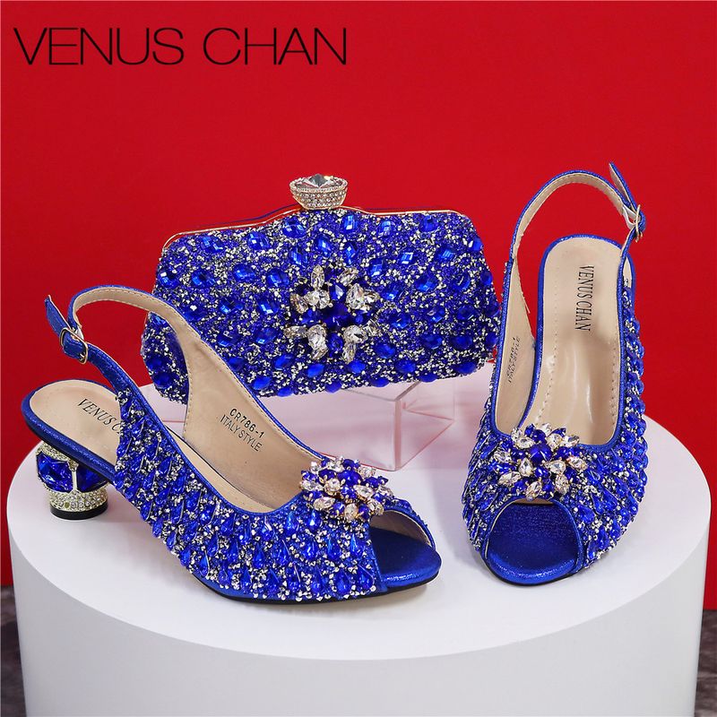 Silver Color Wedding Sandals for Women Bride Platform Round Heels Italian Full Drill Design Elegant Shoes and Bag Matching Set