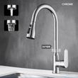 Silver Pull Out Kitchen Sink Faucet Thickened BrassThree Model Stream Sprayer Nozzle Stainless Steel Hot Cold Wate Mixer Tap