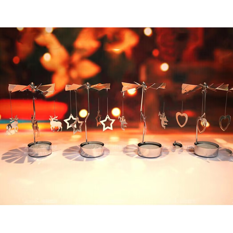 Silver Xmas Rotating Rotary Spinning Carrousel Tea Light Candle Holder Center Decor Newest