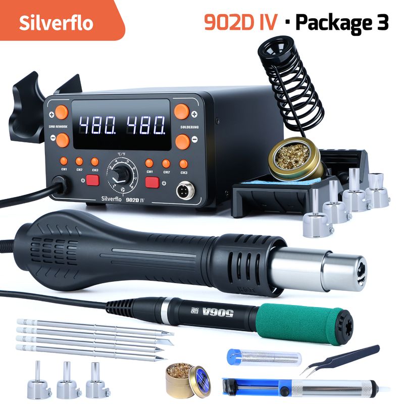 Silverflo 902D-IV 775W Soldering Station Hot Air Rework Station With T12 Soldering Iron Tip Welding Tools for Repair SMD IC