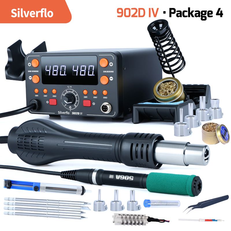 Silverflo 902D-IV 775W Soldering Station Hot Air Rework Station With T12 Soldering Iron Tip Welding Tools for Repair SMD IC