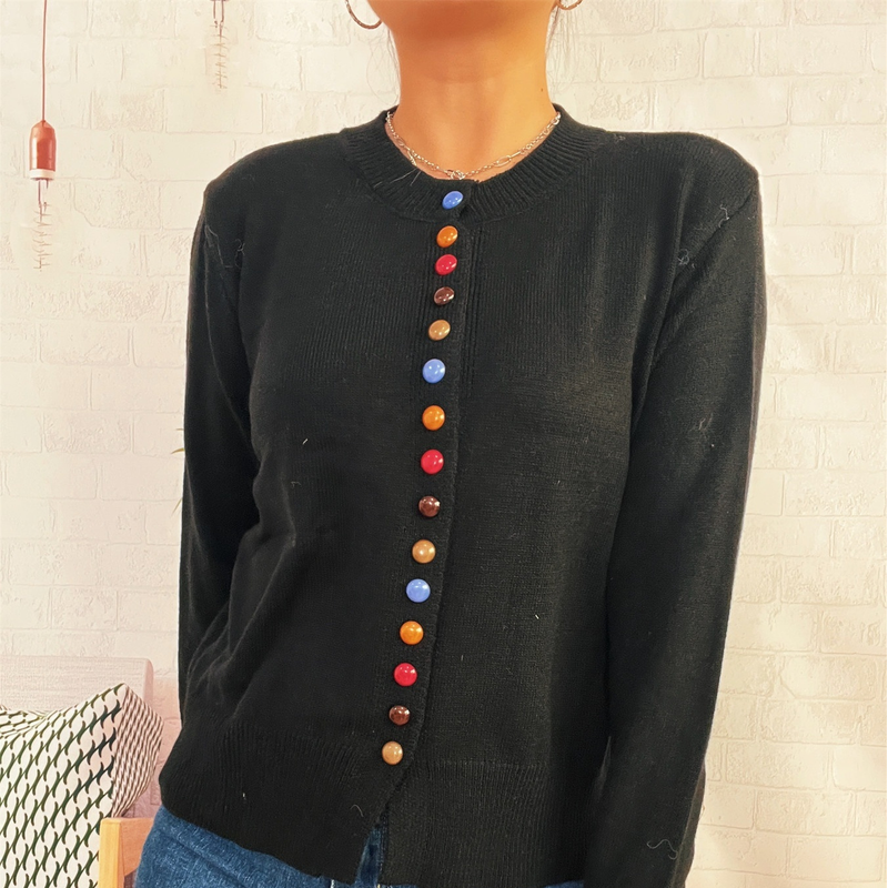 Simple Commute Color Button Single-breasted Knitted Cardigan Sweater Coat Black S