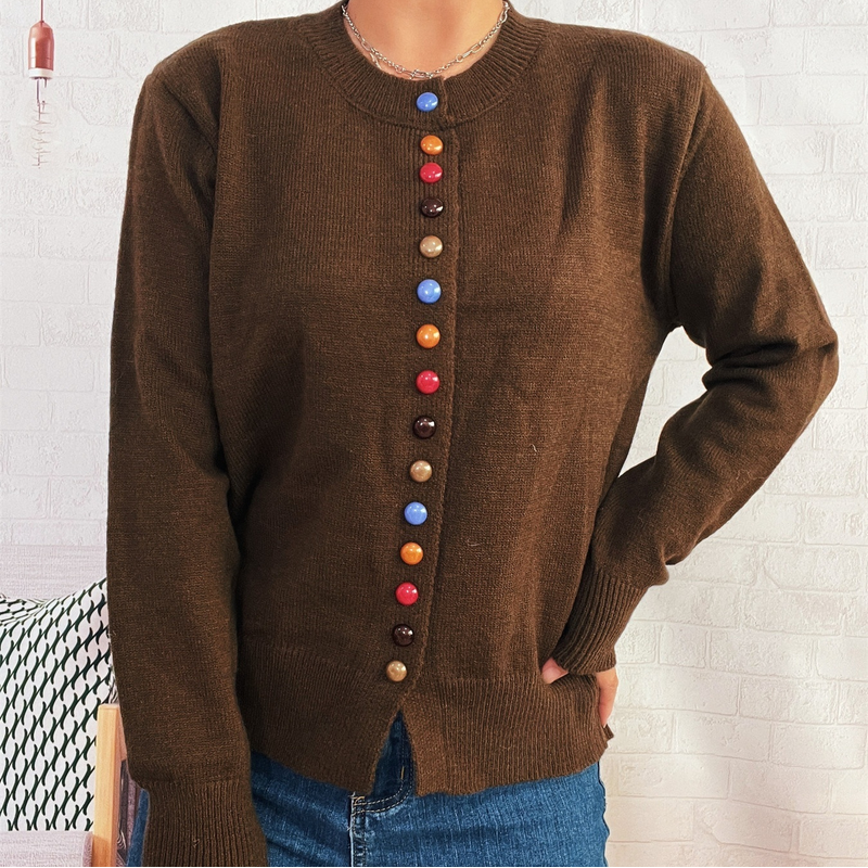 Simple Commute Color Button Single-breasted Knitted Cardigan Sweater Coat Brown S