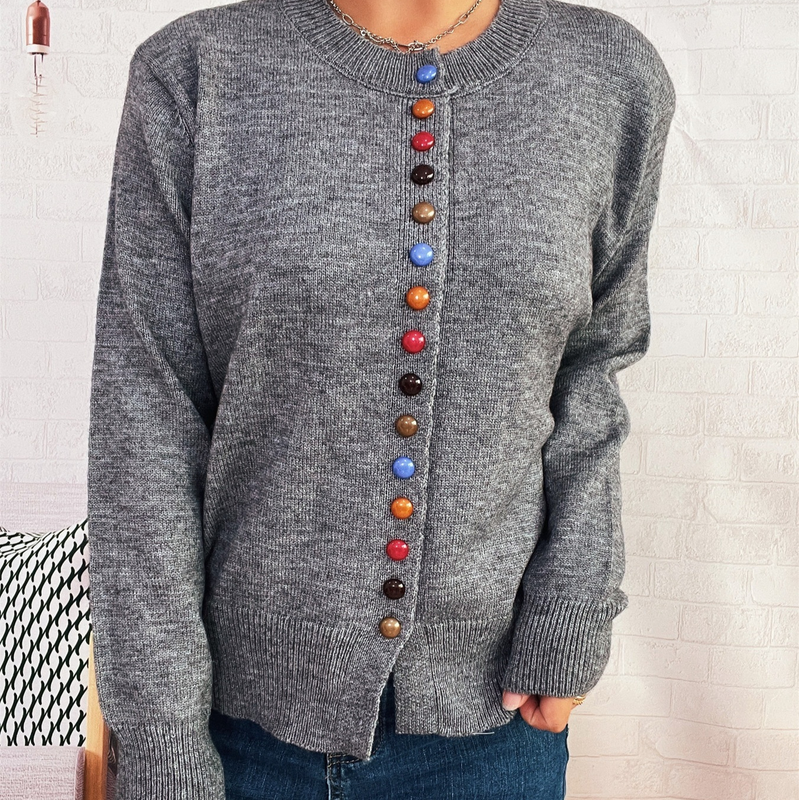 Simple Commute Color Button Single-breasted Knitted Cardigan Sweater Coat Gray M