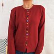 Simple Commute Color Button Single-breasted Knitted Cardigan Sweater Coat Wine Red M