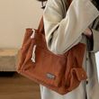 Simple Corduroy Tote Bag, Solid Color Shoulder Bag, Retro Multi Pockets Handbag For School Work Shopping