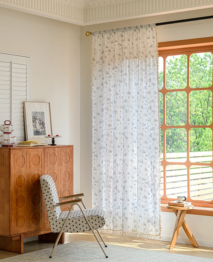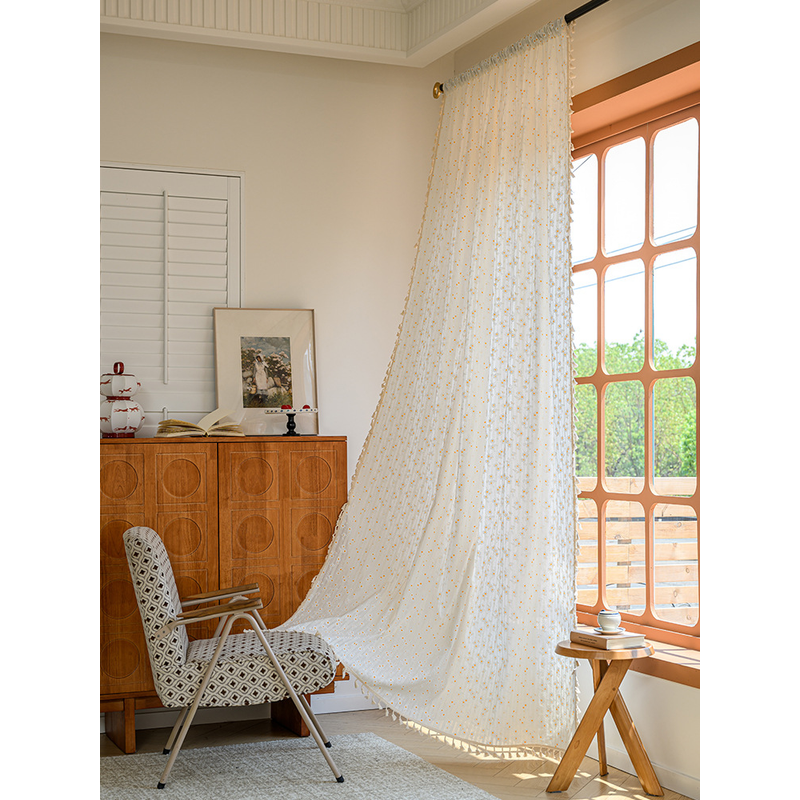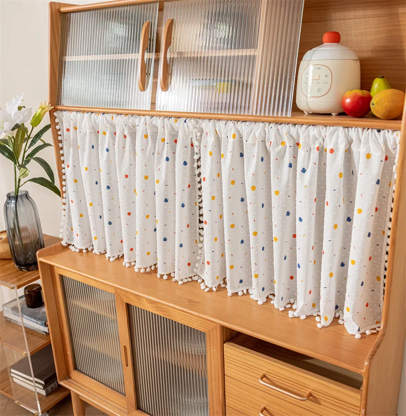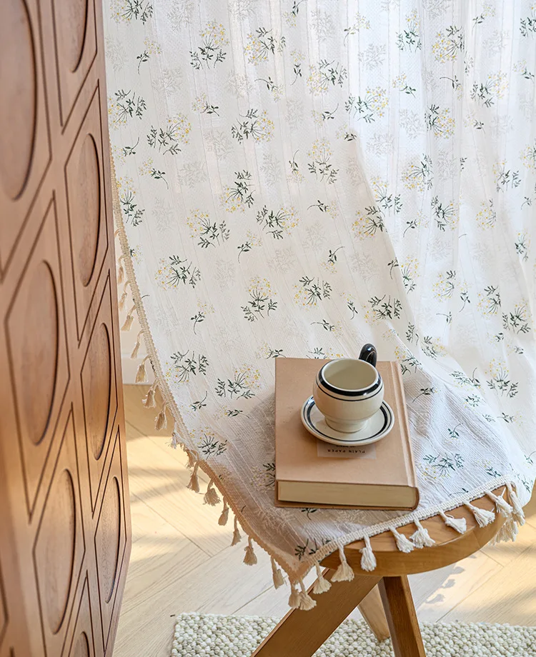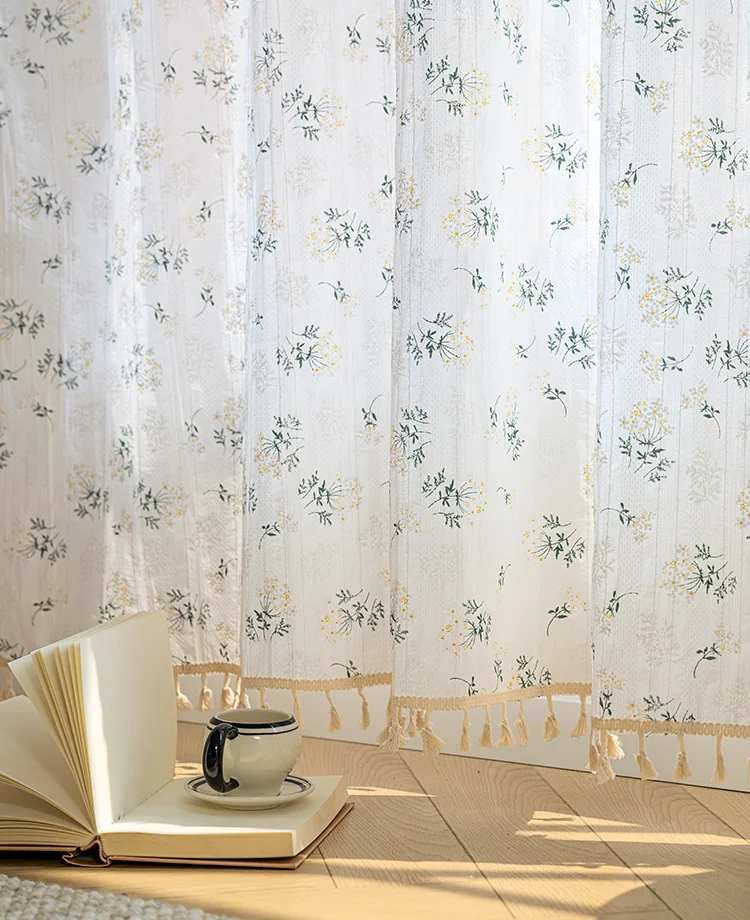 Korean Daisy Curtains Road Pocket Shade Curtain Floral Tassel for Kitchen Bedroom Living Room Bay Window Cabinet Curtain