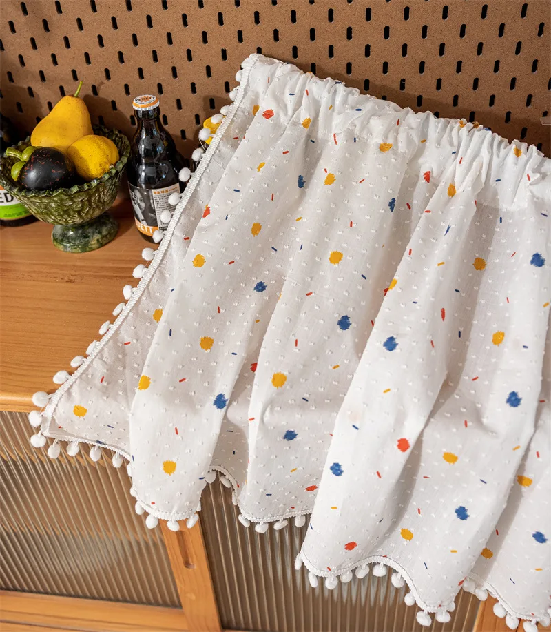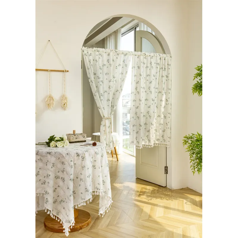 Simple Cotton Daisy Short Curtain Road Pocket Shade Floral Tassel For Kitchen Bedroom Living Room Bay Window Cabinet Curtain
