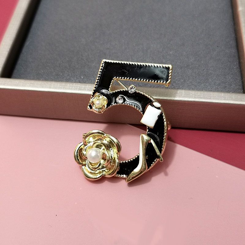 Simple enamel number 5 brooch female fashion pin coat pin skirt skirt corsage Brooches jewelry