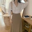 Simple Foundation Long Sleeve Shirt High Waist And All Over Body Skirt Suit Women Top One size