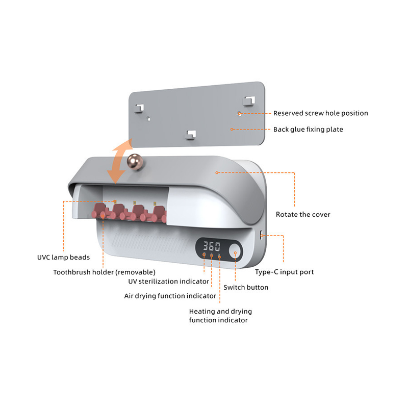 Simple Household Smart Wall-mounted Sterilizer Cover Air-dried Toothbrush Holder White A