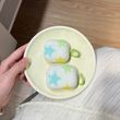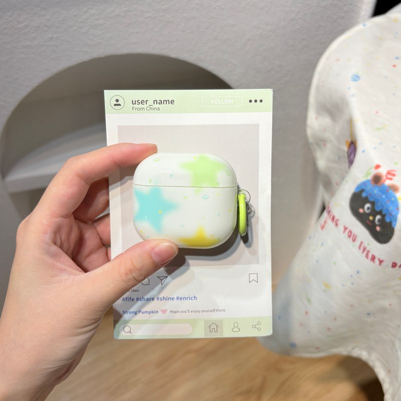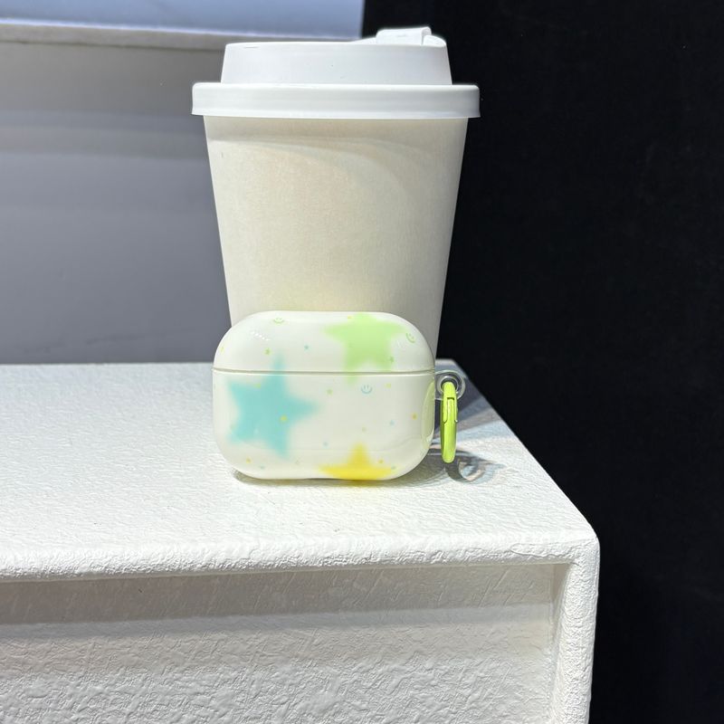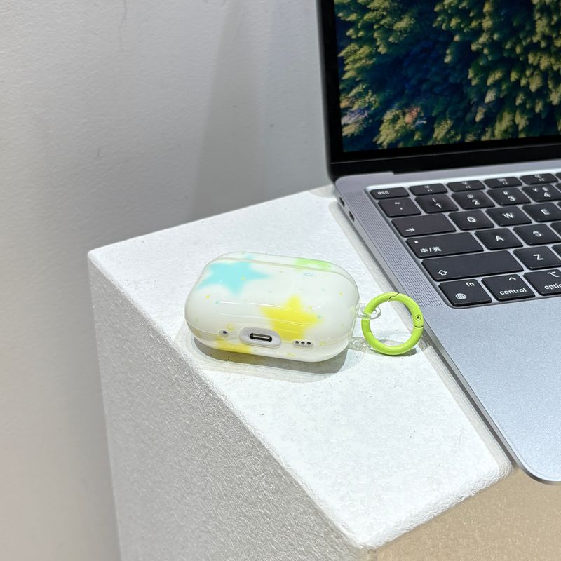 Simple Lovely Three Colorful Stars Pattern Protective Earphone Case with Green Rings Cover for AirPods 1 2 3 4 Pro 2 Pro 3