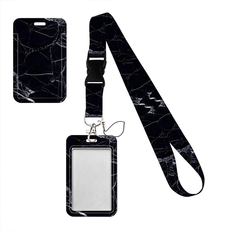Simple marble heart rainbow card holder With buckle Lovely hanging rope ID pass hang accessories holder lanyard passr Case