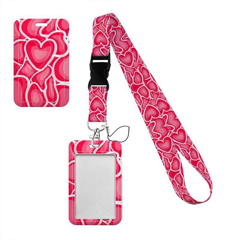 Simple marble heart rainbow card holder With buckle Lovely hanging rope ID pass hang accessories holder lanyard passr Case