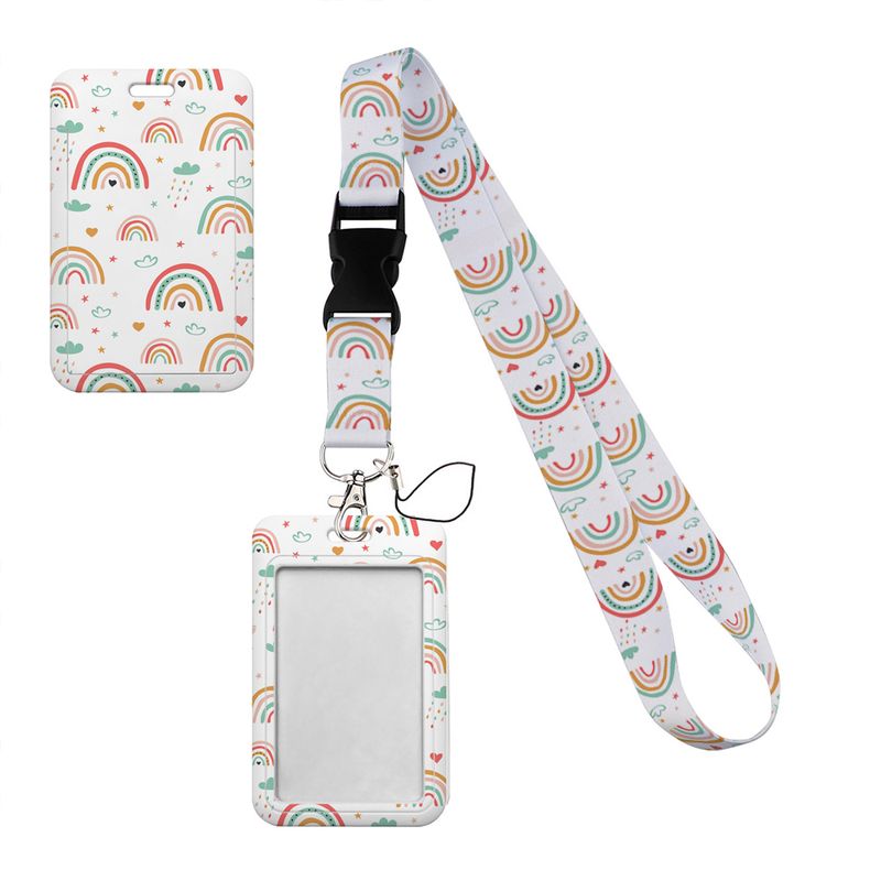 Simple marble heart rainbow card holder With buckle Lovely hanging rope ID pass hang accessories holder lanyard passr Case