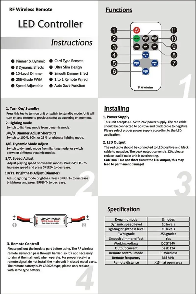 CAUTION:Do not short circuit the LED output, this may lead to permanent damage!
