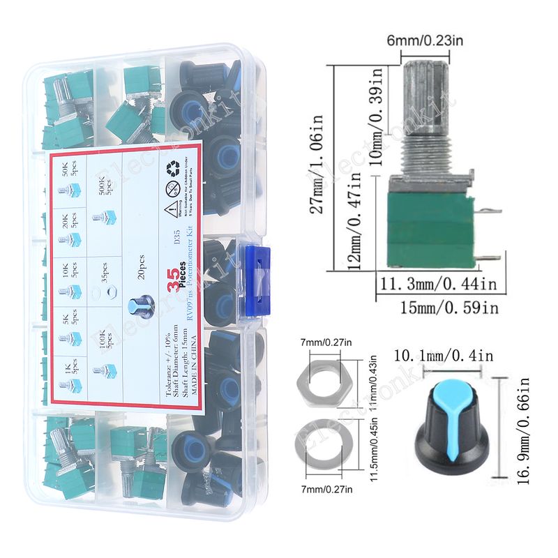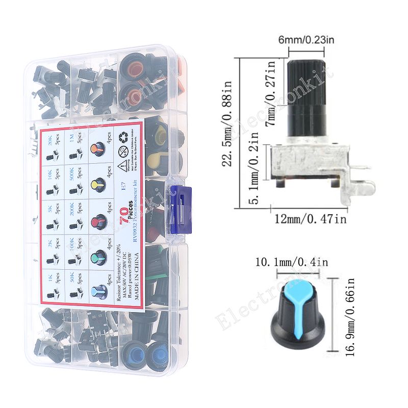Single Dual audio Potentiometer Assortment Kit knods 3Pin 5Pin 6Pin B1K 2K 5K10K 20K 50K 100K 250K 500K 1M