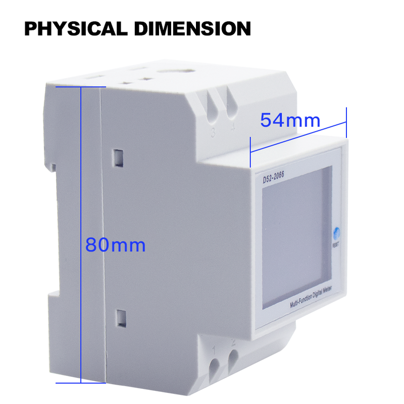 Electric Energy: 0-99999kwh, the display of electric energy resolution is 0.01kwh when measure electric engery between 0-999.99kwh, the display of electric energy resolution is 0.1kwh when measure electric engery between 1000.0-9999.9kwh and the display of electric energy resolution is 1kwh when measure electric engery larger than 9999.9kwh