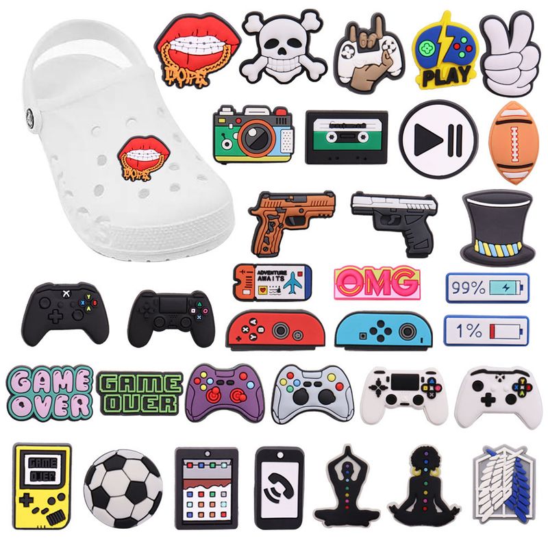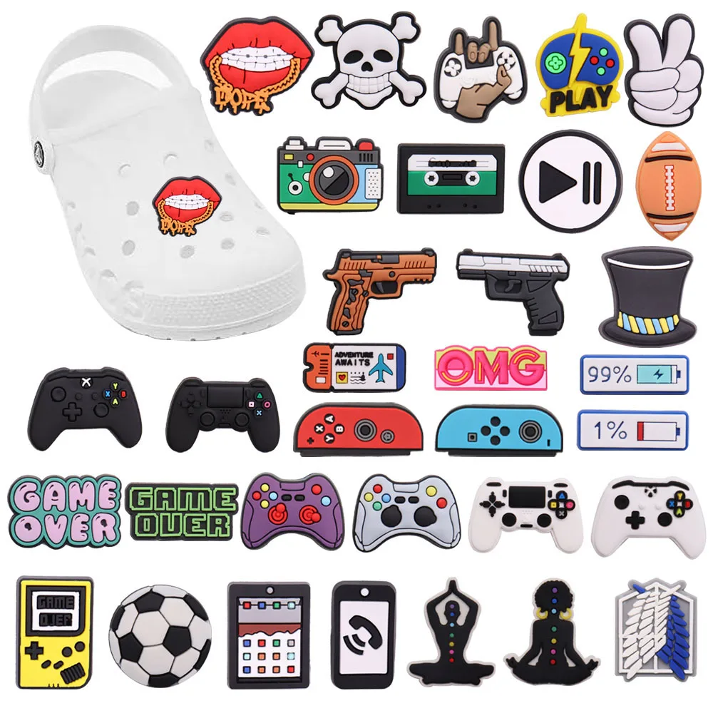 Single Sale 1Pcs Game Over Gun Sports Adult PVC Charms Button Clog Gamepad Shoe Decorations Fit Birthday Gift