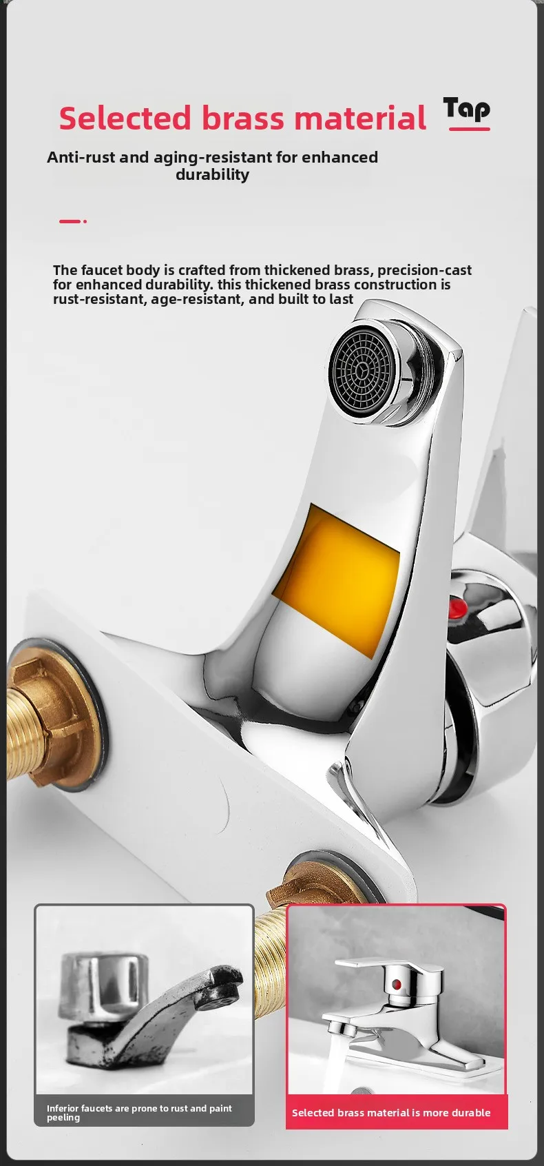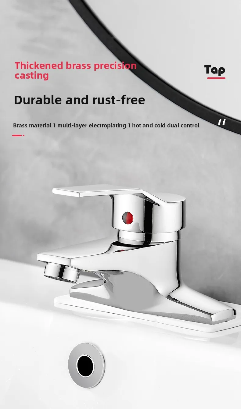 Sink Faucet Hot and Cold Water Basin Faucest Face Wash Tap Deck Mounted Basin Mixer Water Taps Chromed Faucet for Bathroom