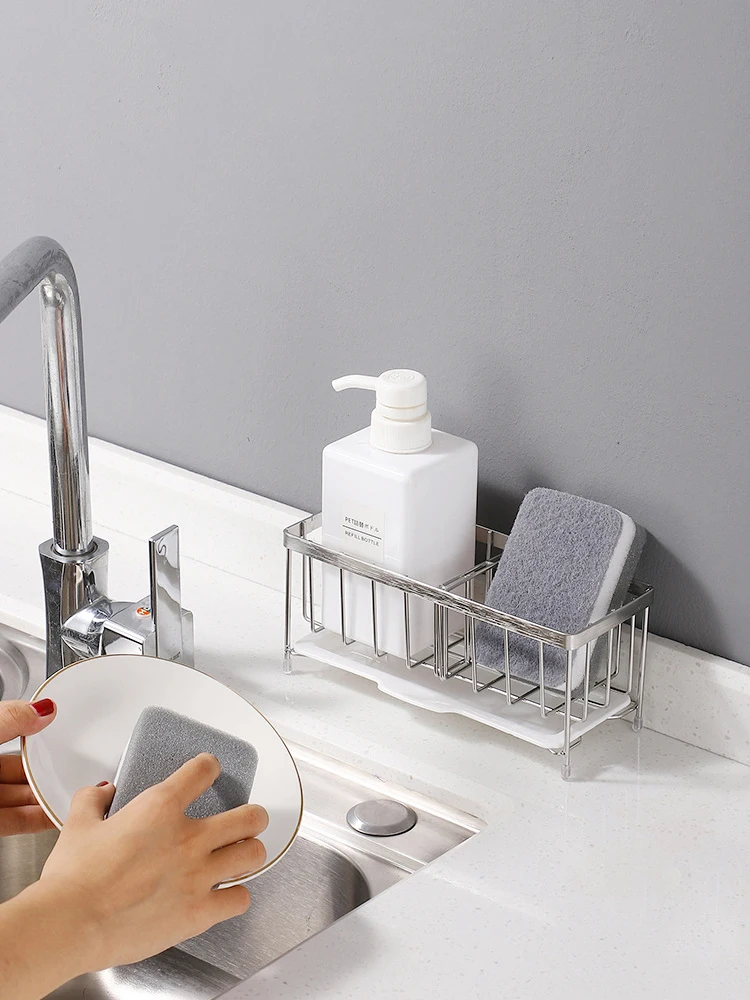 Sink Sponge Holder Kitchen Rack Sponge Holder for Sink Kitchen Sink Organizer Anti-Rust Sink Sponges Scrubbers Soap Dish Rack