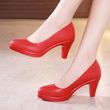 Size 32-43 New Women Leather Shoes Women High Heels Shallow Mouth Platform Pumps Fashion Black Career Work Office Ladies Shoes