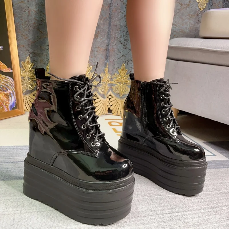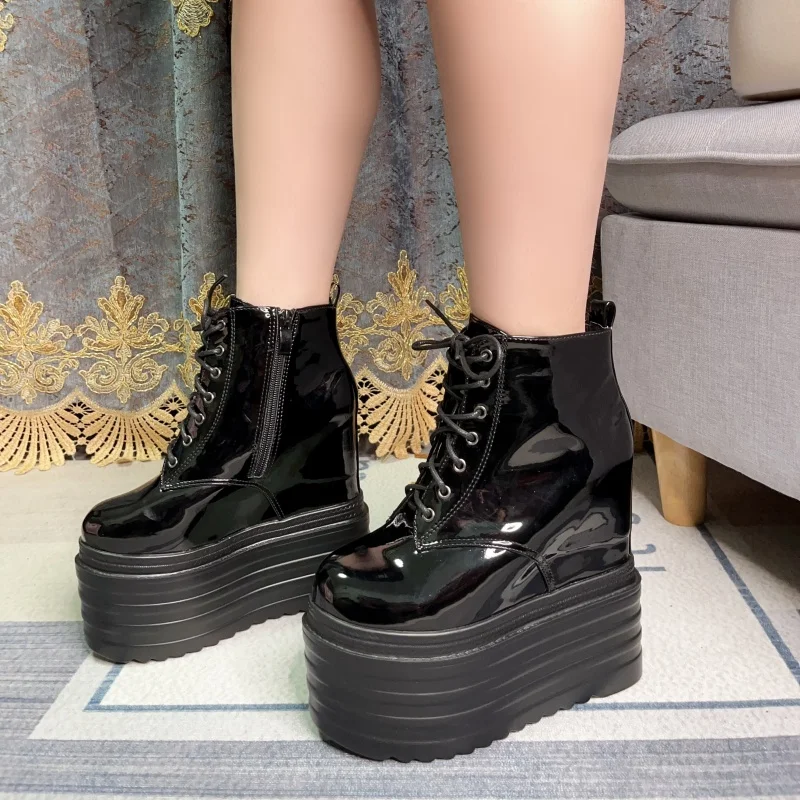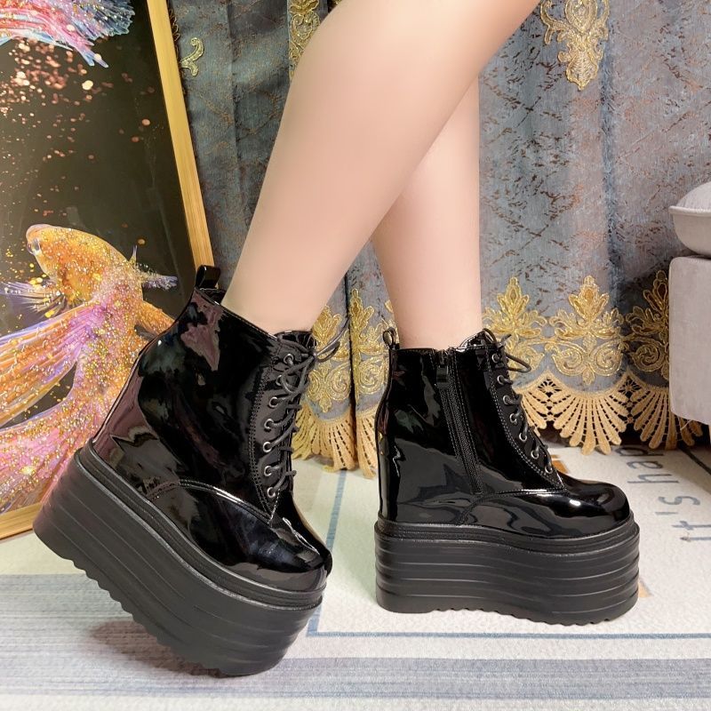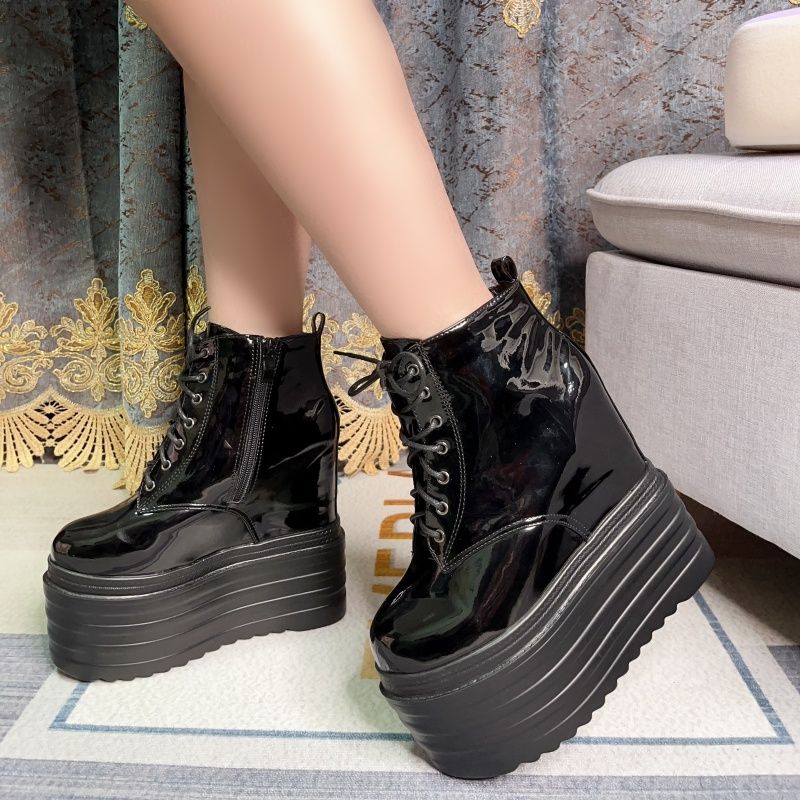 Size 34-39 Botas Mujer Plataforma Autumn Womens Boots Punk Style 13CM 15CM Wedge High Heel Boots Lace Up Wedge Platform Boots