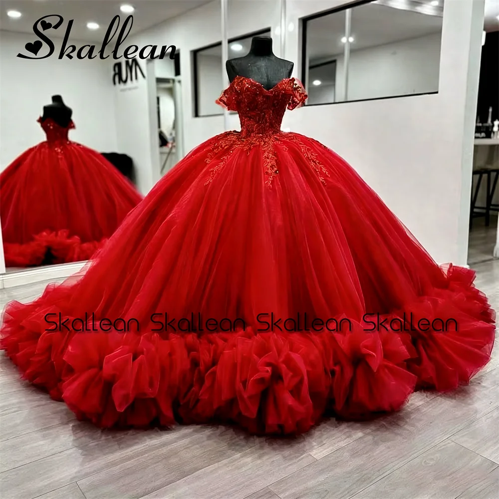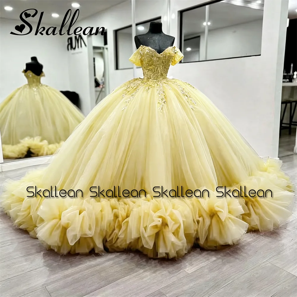 Skallean Trendy Quinceanera Dresses for Girl Appliques Off the Shoulder Ruched Vestido De 15 Quinceaneras Morado Customized