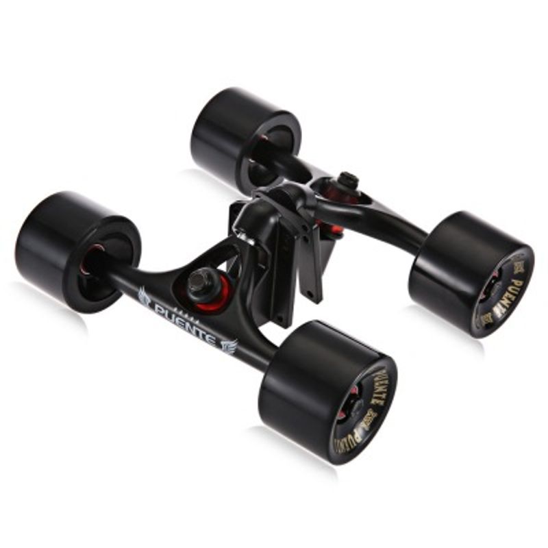 -With trucks, wheels, risers, bearings, bolts and nuts
