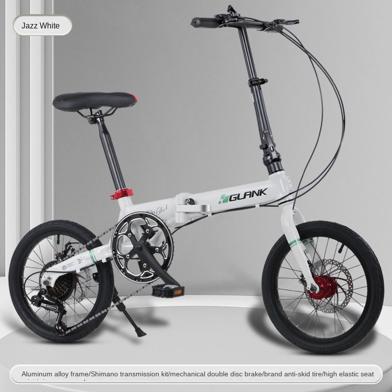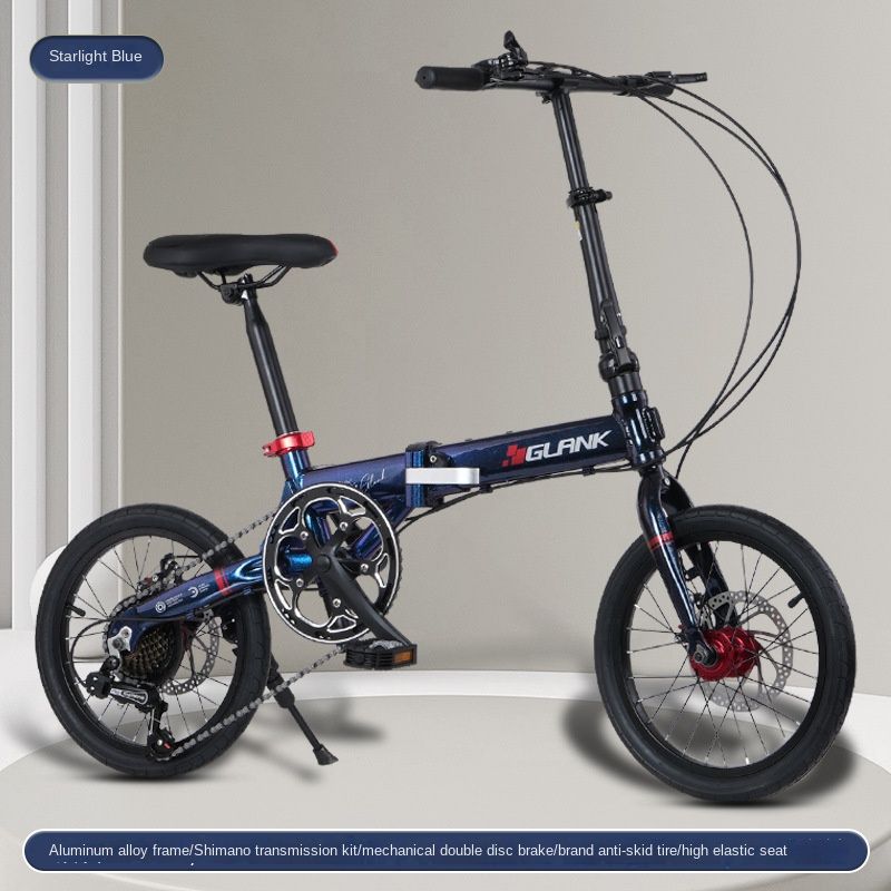 SKIG-Folding Bike with Double Disc Brake, Lightweight Walker Pedal for Student and Adult, Speed Adjustable, Camping, 16 Inch