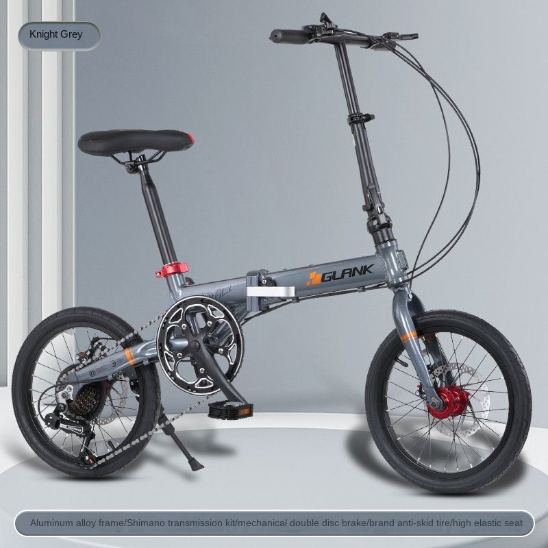 SKIG-Folding Bike with Double Disc Brake, Lightweight Walker Pedal for Student and Adult, Speed Adjustable, Camping, 16 Inch