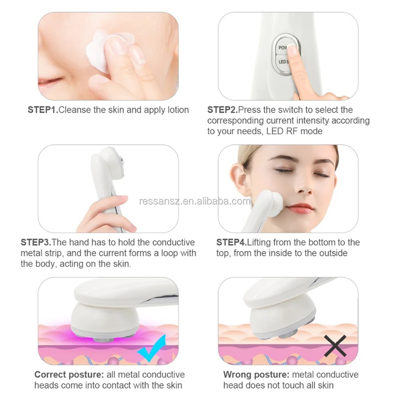 --RF current: high-frequency electrical resistance heating, effective at improving sagging skin,aging wrinkles, promote lymphatic and blood circulation and other care.